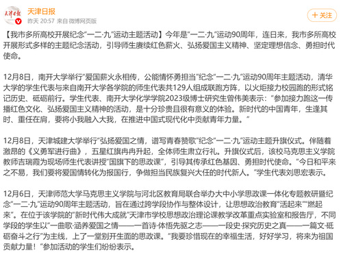 “天津日报”微博丨我市多所高校开展纪念“一二·九”运动主题活动