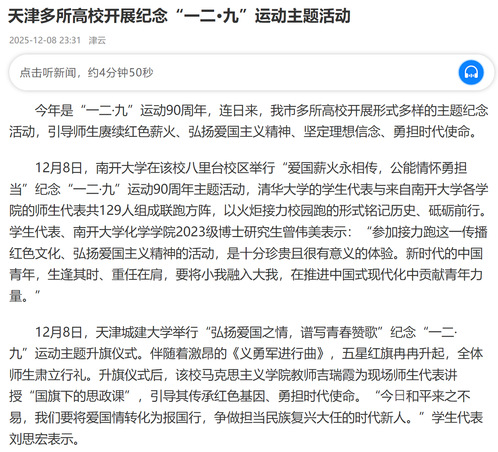 津云丨天津多所高校开展纪念“一二·九”运动主题活动