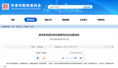 天津市教育委员会网站丨我市多所高校举办国家宪法日主题活动 让宪法精神浸润学生心田