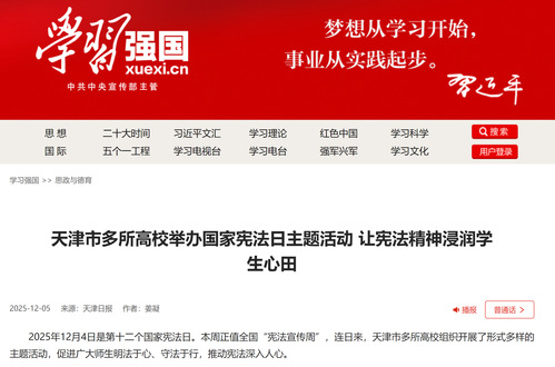 学习强国丨天津市多所高校举办国家宪法日主题活动 让宪法精神浸润学生心田