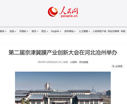 人民网沧州12月6日电 (记者方童)12月5日—7日,第二届京津冀膜产业创新大会暨全国分离膜标准化技术委员会2025年度大会在河北省沧州市举办。