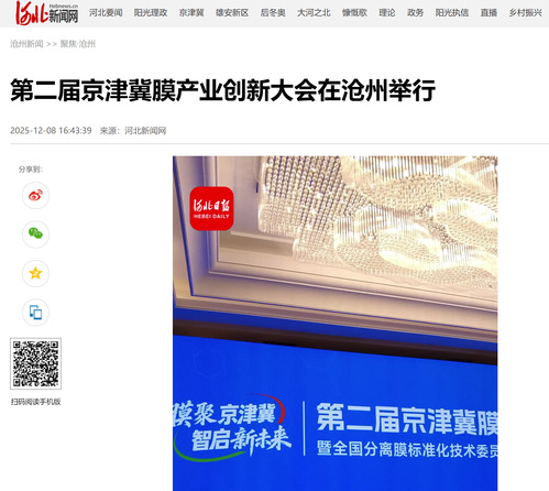 河北新闻网丨第二届京津冀膜产业创新大会在沧州举行