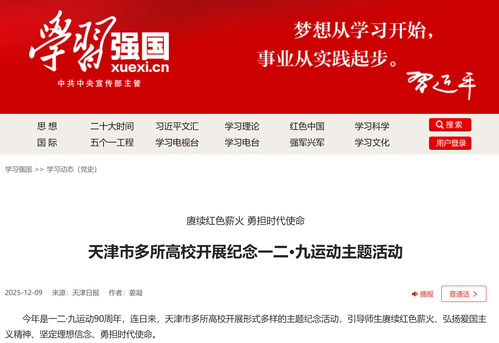 学习强国丨赓续红色薪火 勇担时代使命天津市多所高校开展纪念一二·九运动主题活动