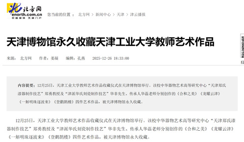 北方网丨天津博物馆永久收藏天津工业大学教师艺术作品