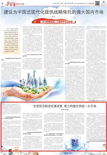 天津日报丨全面规范税收优惠政策 着力构建全国统一大市场