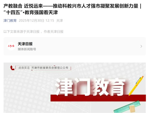 “津门教育”微信公众号丨产教融合 近悦远来——推动科教兴市人才强市凝聚发展创新力量 | “十四五”·教育强国看天津