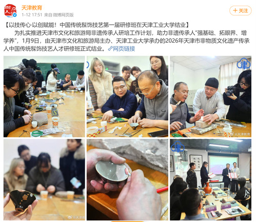 为扎实推进天津市文化和旅游局非遗传承人研培工作计划,助力非遗传承人“强基础、拓眼界、增学养”,1月9日,由天津市文化和旅游局主办、天津工业大学承办的2026年天津市非物质文化遗产传承人中国传统髹饰技艺人才研修班正式结业。