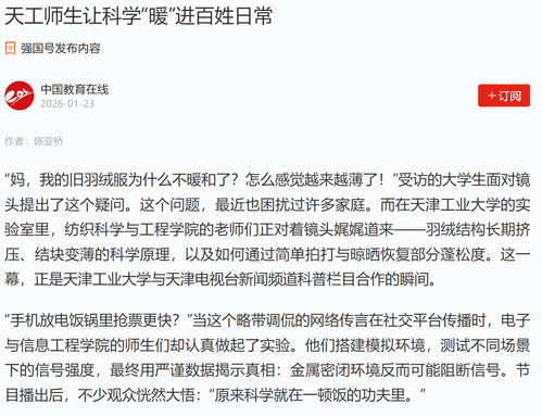 学习强国丨天工师生让科学“暖”进百姓日常