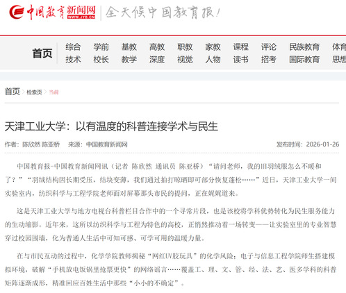 中国教育新闻网丨天津工业大学:以有温度的科普连接学术与民生