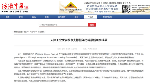 纺织中国在线丨天津工业大学发表支撑框架材料最新研究成果