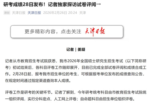 “天津日报”微信公众号丨研考成绩28日发布!记者独家探访试卷评阅→