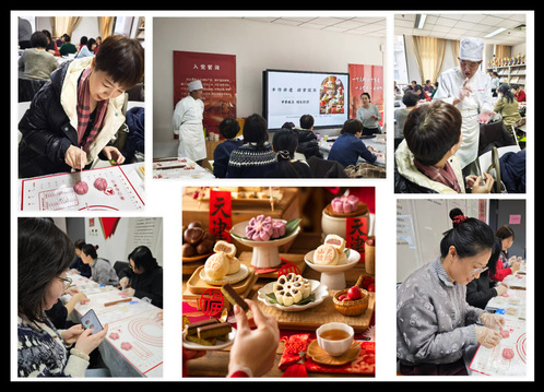 活动邀请百年中华老字号“祥禾饽饽铺”代表性传承人演示点心制作工艺,从原料配比、揉面技巧到包馅手法、造型设计,每一个细节都耐心讲解,工作人员则分组进行一对一指导,帮助女教职工解决制作过程中遇到的问题,如面团干湿调整、花纹雕刻等。活动现场充满欢声笑语,全程氛围热烈、反响良好,大家互相欣赏、拍照留念,分享了自己在制作过程中的感悟与对优秀传统工艺的理解。