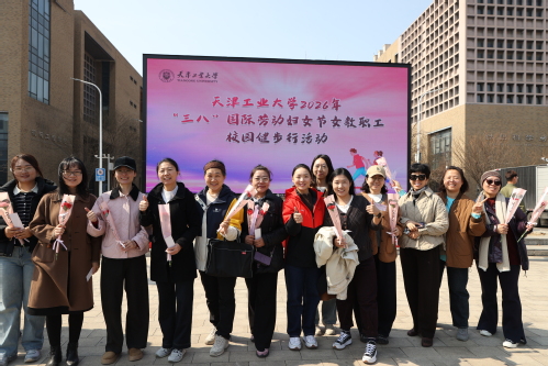各分会高度重视本次活动,广泛宣传、积极动员,女教职工们踊跃参与,活动在欢快的热身运动音乐中拉开序幕。郭滇华宣布:“天津工业大学2026年三八国际劳动妇女节女教职工校园健步行开始,出发!”女教职工手执代表赞赏和热爱的康乃馨,沿指定路线有序前行,在运动中感受春意盎然的校园美景,行进中大家观景、打卡、拍照,放松心情、陶冶情操,享受午间阳光、体验工作之余的松弛感和运动带来的快乐与活力。