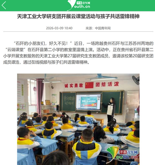 中国青年网丨天津工业大学研支团开展云课堂活动与孩子共话雷锋精神