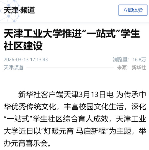 新华社客户端丨天津工业大学推进“一站式”学生社区建设