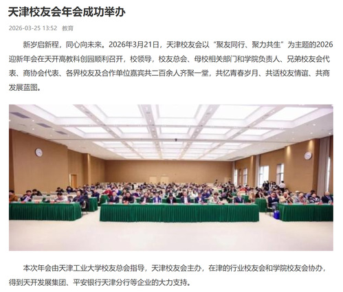 本次年会既是一场温情的团圆聚会,更是一次凝聚共识、汇聚力量的发展盛会。天津校友会进一步夯实了组织基础,拓展了资源平台,为校友成长、母校发展和地方经济建设注入了新动能。