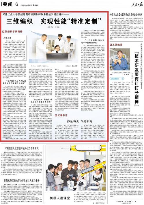 人民日报丨天津工业大学教授陈利带领团队研制多种航天新型材料——三维编织 实现性能“精准定制”(弘扬科学家精神)