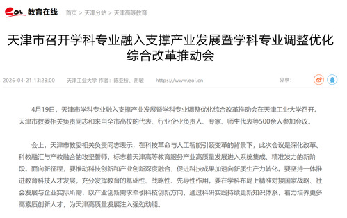 教育在线丨天津市召开学科专业融入支撑产业发展暨学科专业调整优化综合改革推动会