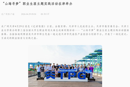 央广网天津4月29日消息(记者张强)日前,由教育部、天津市人民政府主办,天津市教育委员会、天津工业大学承办的第三届全国大学生职业规划大赛总决赛同期活动——“山海寻梦”职业生涯主题实践活动圆满落幕。全国各地观摩团及天津市师生代表一起走进天津市代表性产业前沿与创新平台,开展了一场沉浸式、互动式的职业探索与实践之旅。